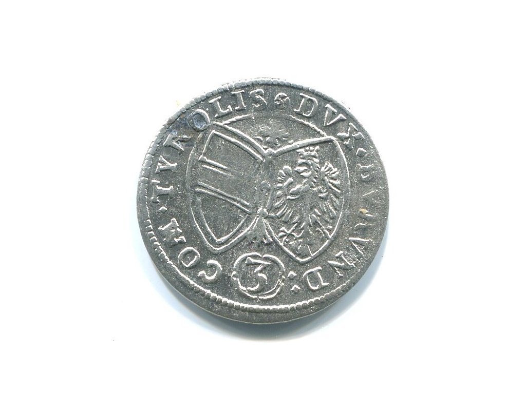 TYROLY. Arcivévoda Ferdinand Karel (1632 - 1662). 3 Kreuzer 1648. Hall. Ag.