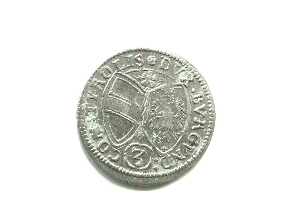TYROLY. Arcivévoda Ferdinand Karel (1632 - 1662). 3 Kreuzer 1649. Hall. Ag.