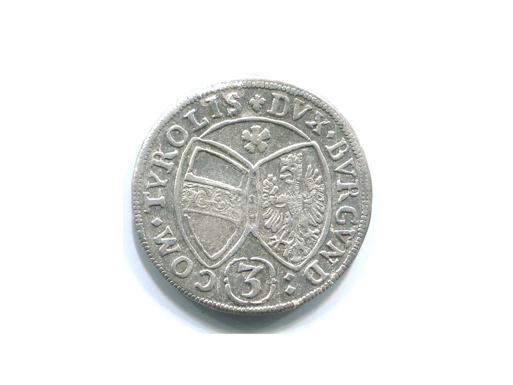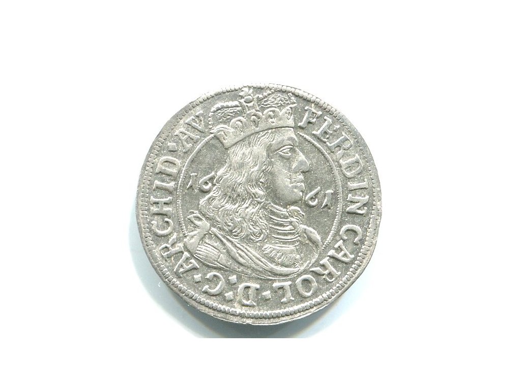 TYROLY. Arcivévoda Ferdinand Karel (1632 - 1662). 3 Kreuzer 1661. Hall. Ag.