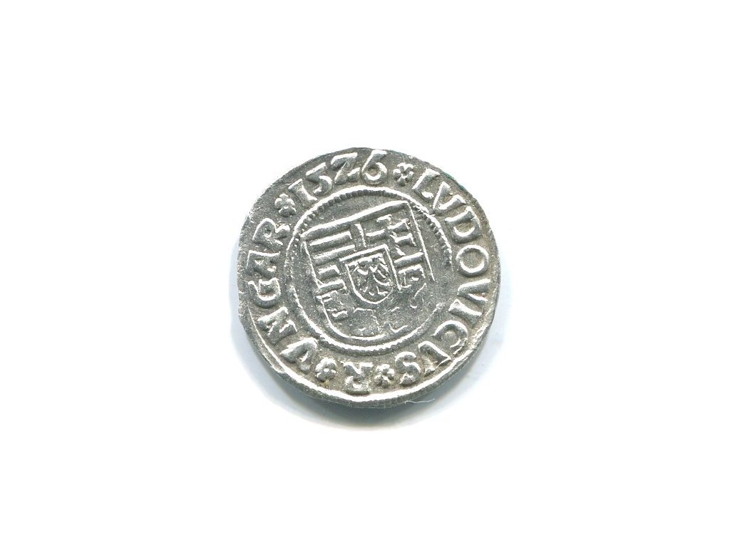 UHRY. Ludvík II. Jagelonský (1516 - 1526). Denár 1526 / K-B. Ag.