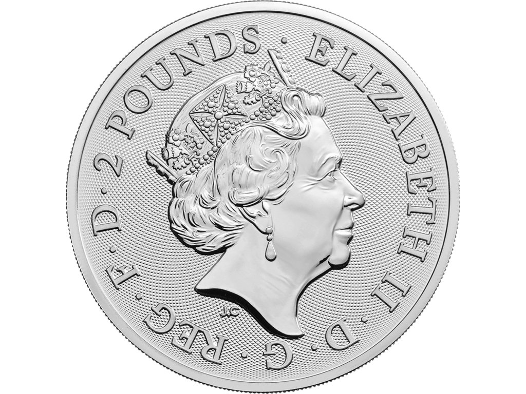 Averz mince nese tradiční portrét královny Elizabeth II, oficiální nominální hodnotu 2 Pounds a označení emitenta The Royal Mint.
