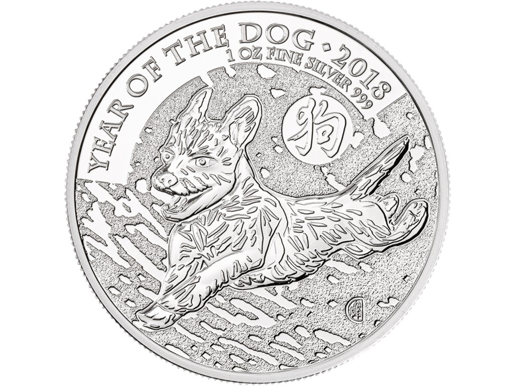 Na reverzní straně je detailní motiv psa inspirovaný čínským lunárním kalendářem. Design vyniká jemnými liniemi srsti a dynamickým postojem zvířete, které je v čínské tradici spojováno s loajalitou, spravedlností a ochranou rodiny. Motiv doplňuje nápis “Year of the Dog” a letopočet 2018.