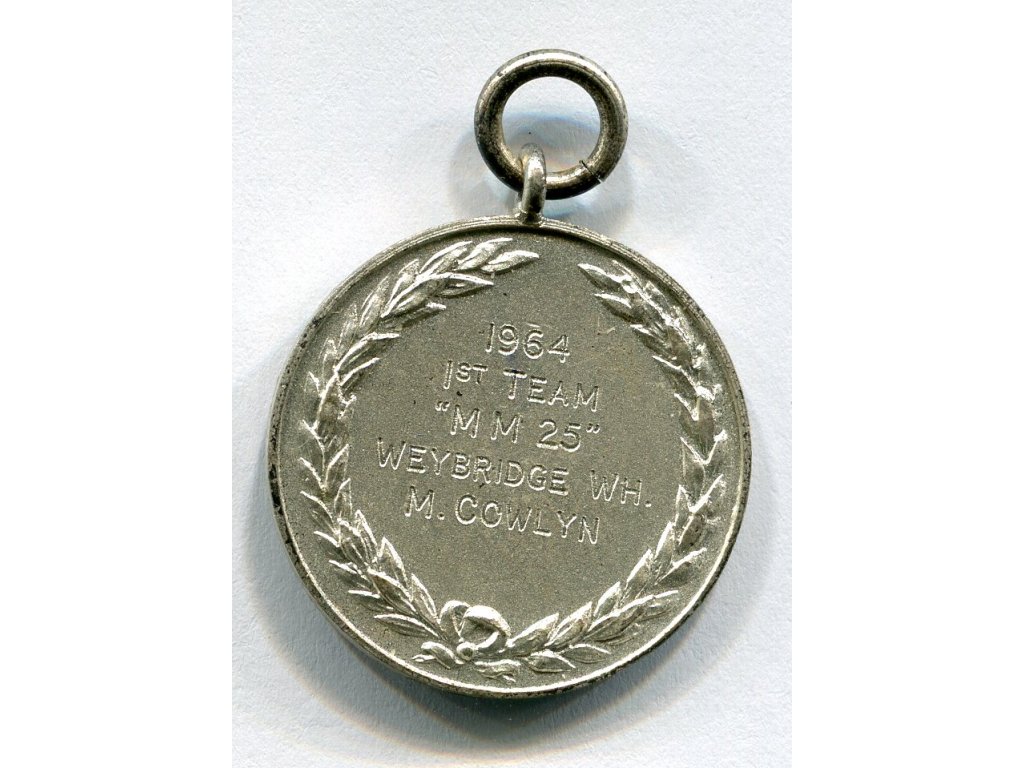 VELKÁ BRITÁNIE. Cyklistická medaile. Camberley Wheelers.1st Team MM 25. Weybridge Wh. M. Cowlyn. 1964.
