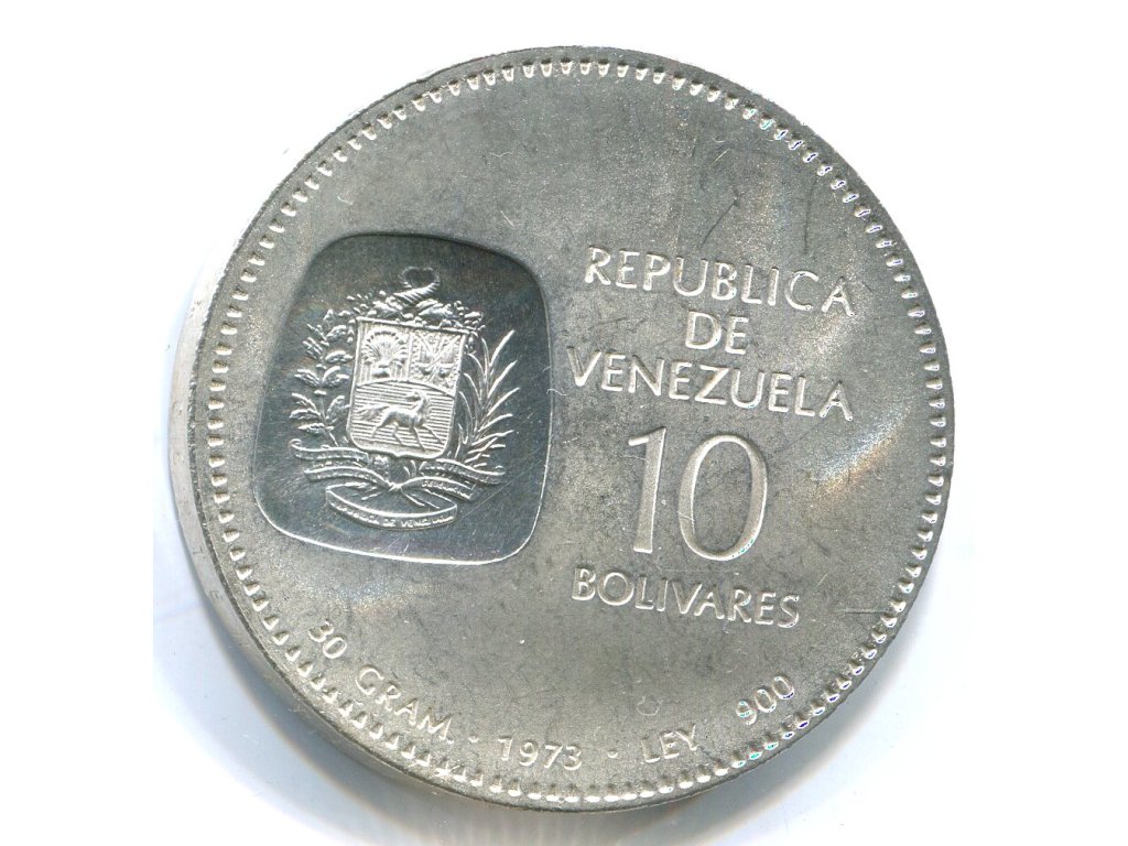 VENEZUELA. 10 bolivares 1973. Ag.