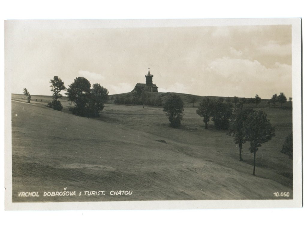 VRCHOL U DOBROŠOVA S TURISTICKOU CHATOU.