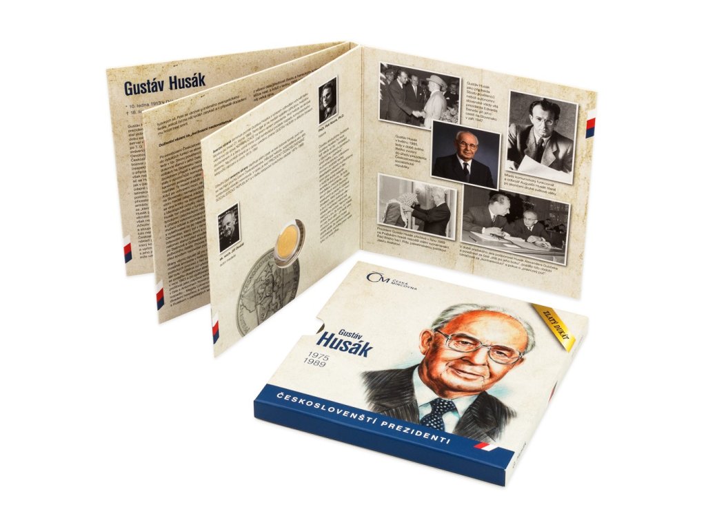 Zlatý dukát z oblíbené sběratelské série Českoslovenští prezidenti připomíná osobnost Gustáva Husáka, jenž stál v čele Československa v letech 1975–1989. Tento precizně zpracovaný numismat vznikl v České mincovně a nese rukopis akademického sochaře Jiřího Dostála, který je autorem jak averzu, tak reverzu.