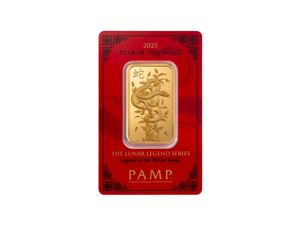 Zlatý investiční slitek Rok Hada o hmotnosti 1 trojské unce je druhým vydáním série ražených slitků společnosti PAMP, která vypráví legendární příběhy spojené s dvanácti zvířaty čínského lunárního kalendáře. Emise pro rok 2025 přináší motiv samice Bílého hada – Bai Suzhen – jednu z nejznámějších postav čínské mytologie.